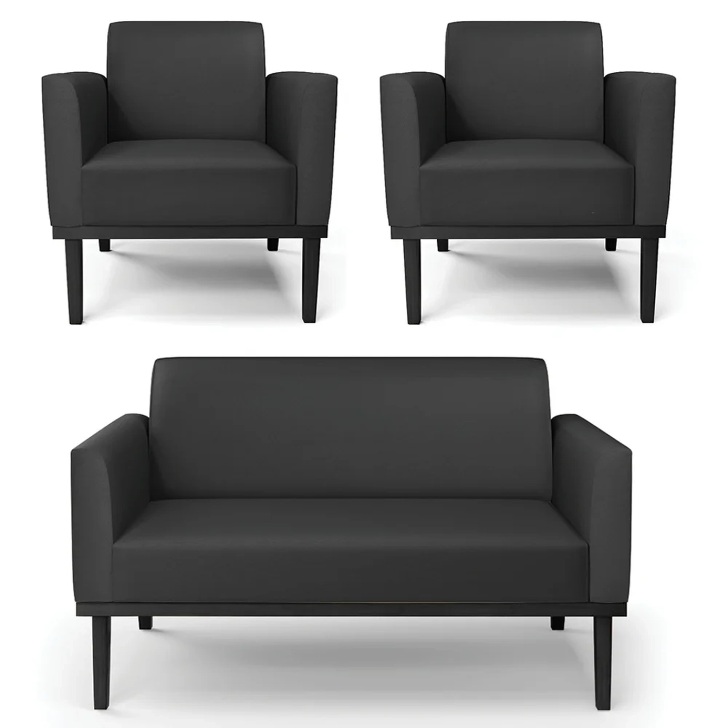 O Sofá Namoradeira e 2 Poltronas Base Madeira Preto Maressa Sintético Preto, da Ibiza é o conjunto ideal para quem busca beleza, conforto e versatilidade. Você pode usar na sua Sala De Estar, recepção ou qualquer outro ambiente que desejar.