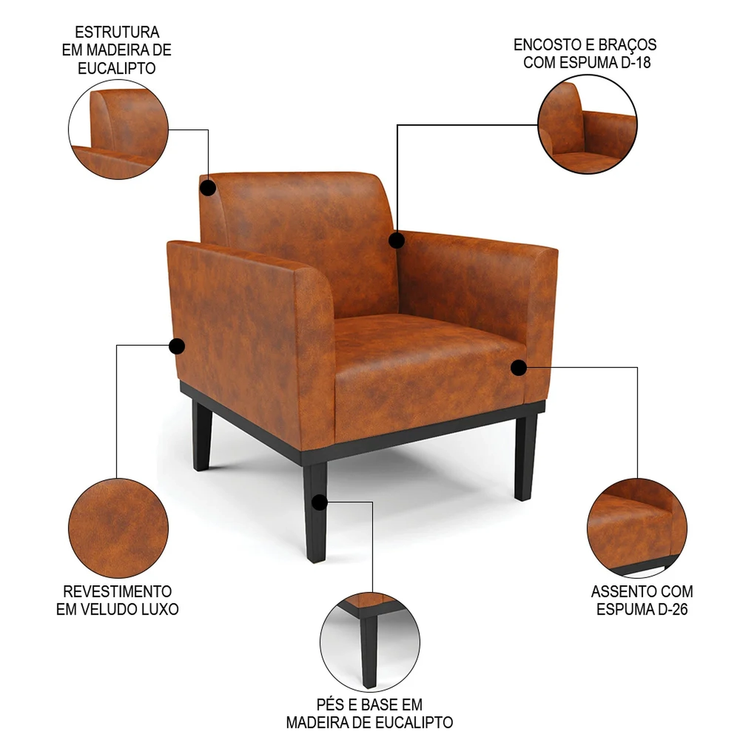 Material dos Pés: Madeira Eucalipto.