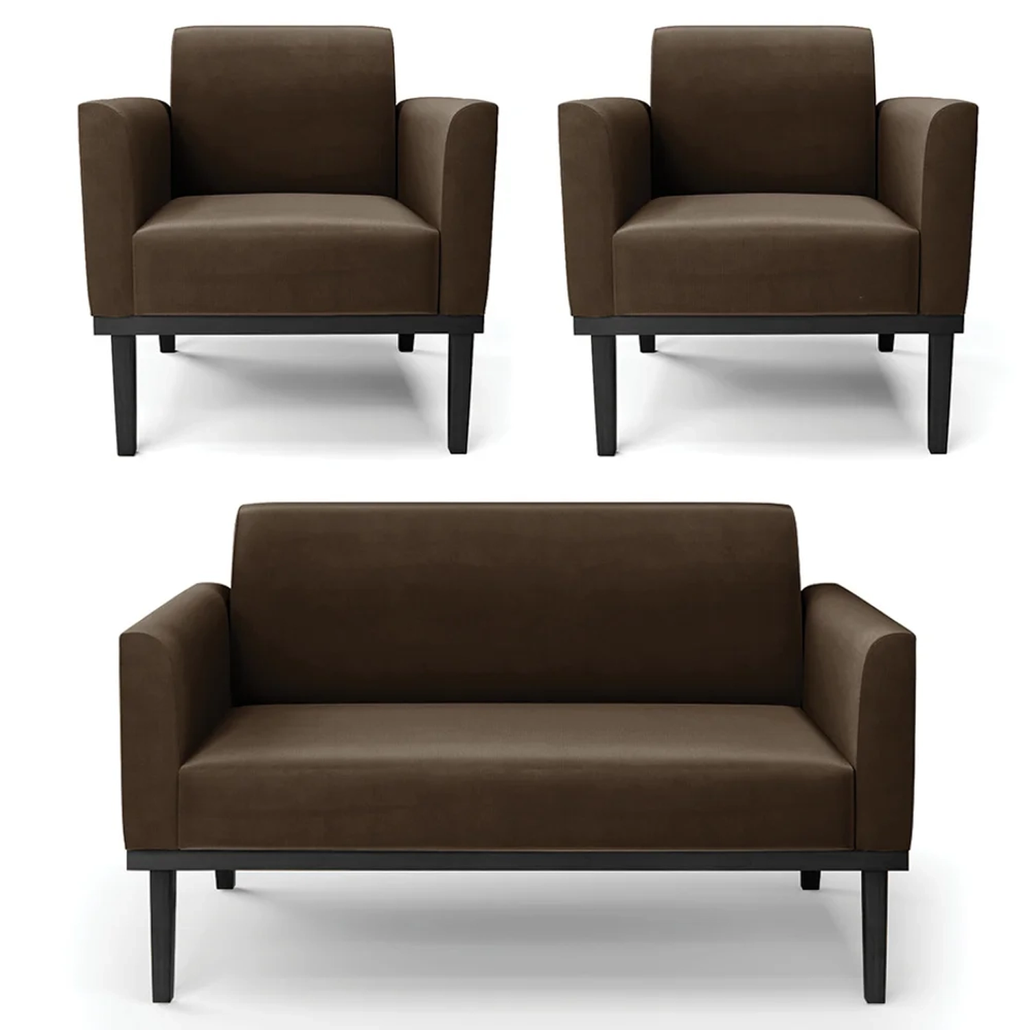 O Sofá Namoradeira e 2 Poltronas Base Madeira Preto Maressa Suede Marrom, da Ibiza é o conjunto ideal para quem busca beleza, conforto e versatilidade. Você pode usar na sua Sala De Estar, recepção ou qualquer outro ambiente que desejar.