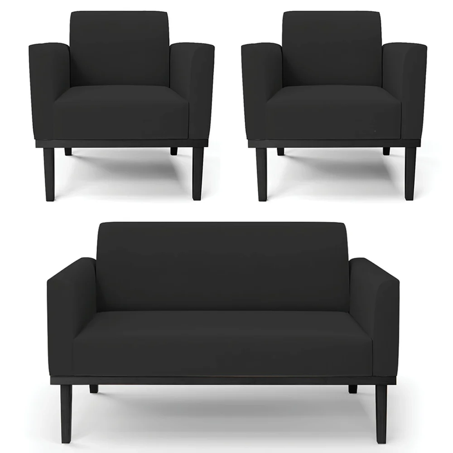 O Sofá Namoradeira e 2 Poltronas Base Madeira Preto Maressa Veludo Preto, da Ibiza é o conjunto ideal para quem busca beleza, conforto e versatilidade. Você pode usar na sua Sala De Estar, recepção ou qualquer outro ambiente que desejar.