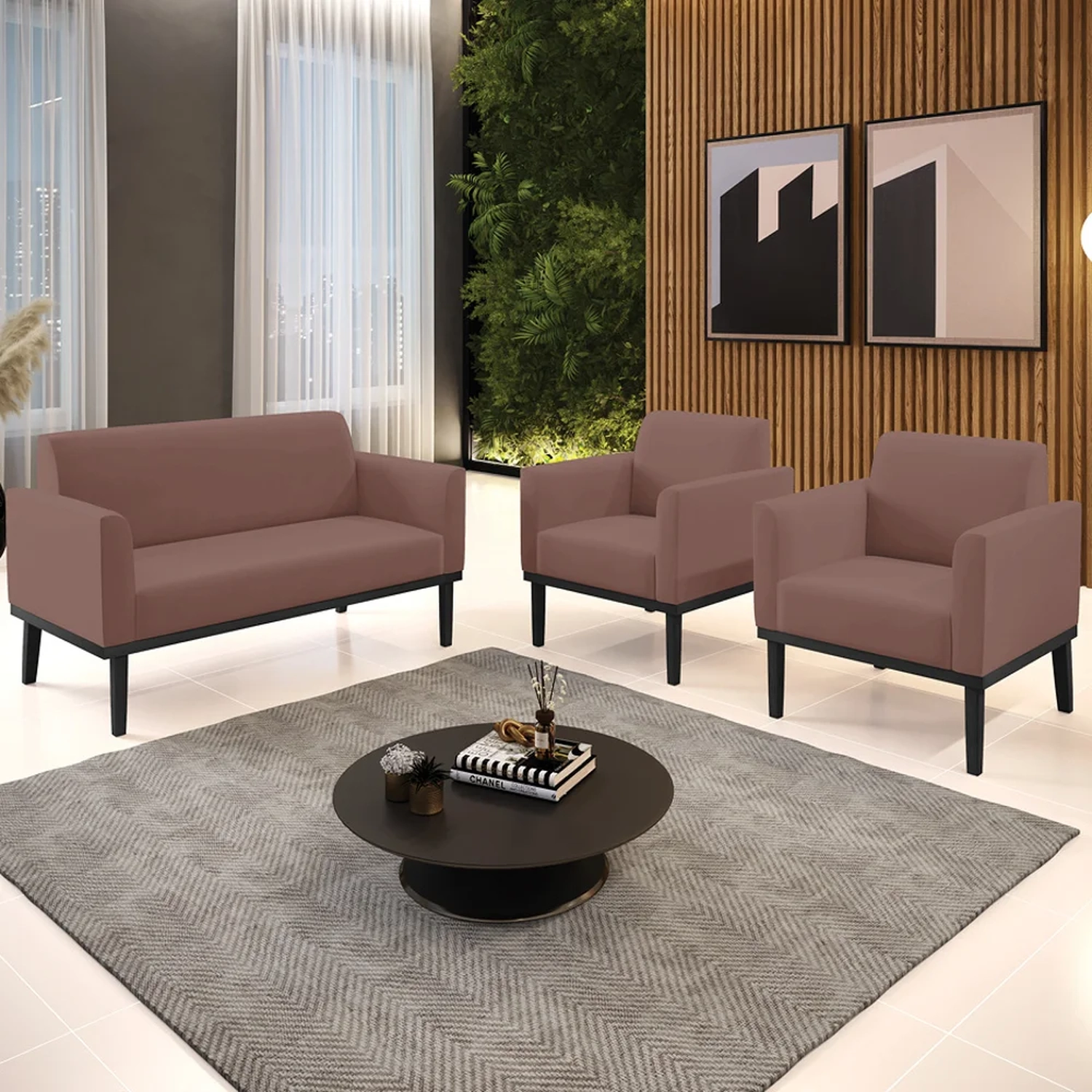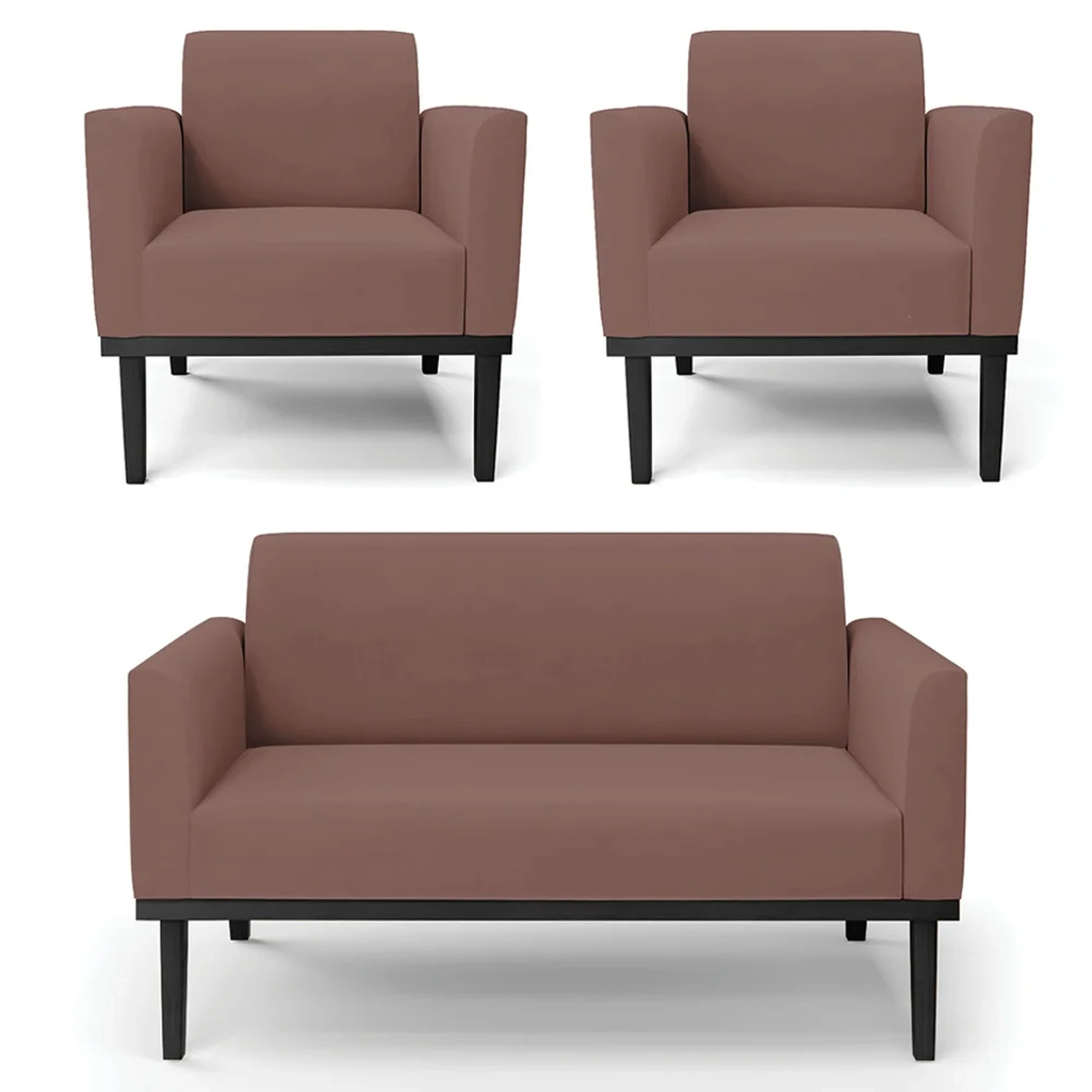 O Sofá Namoradeira e 2 Poltronas Base Madeira Preto Maressa Veludo Rosê, da Ibiza é o conjunto ideal para quem busca beleza, conforto e versatilidade. Você pode usar na sua Sala De Estar, recepção ou qualquer outro ambiente que desejar.