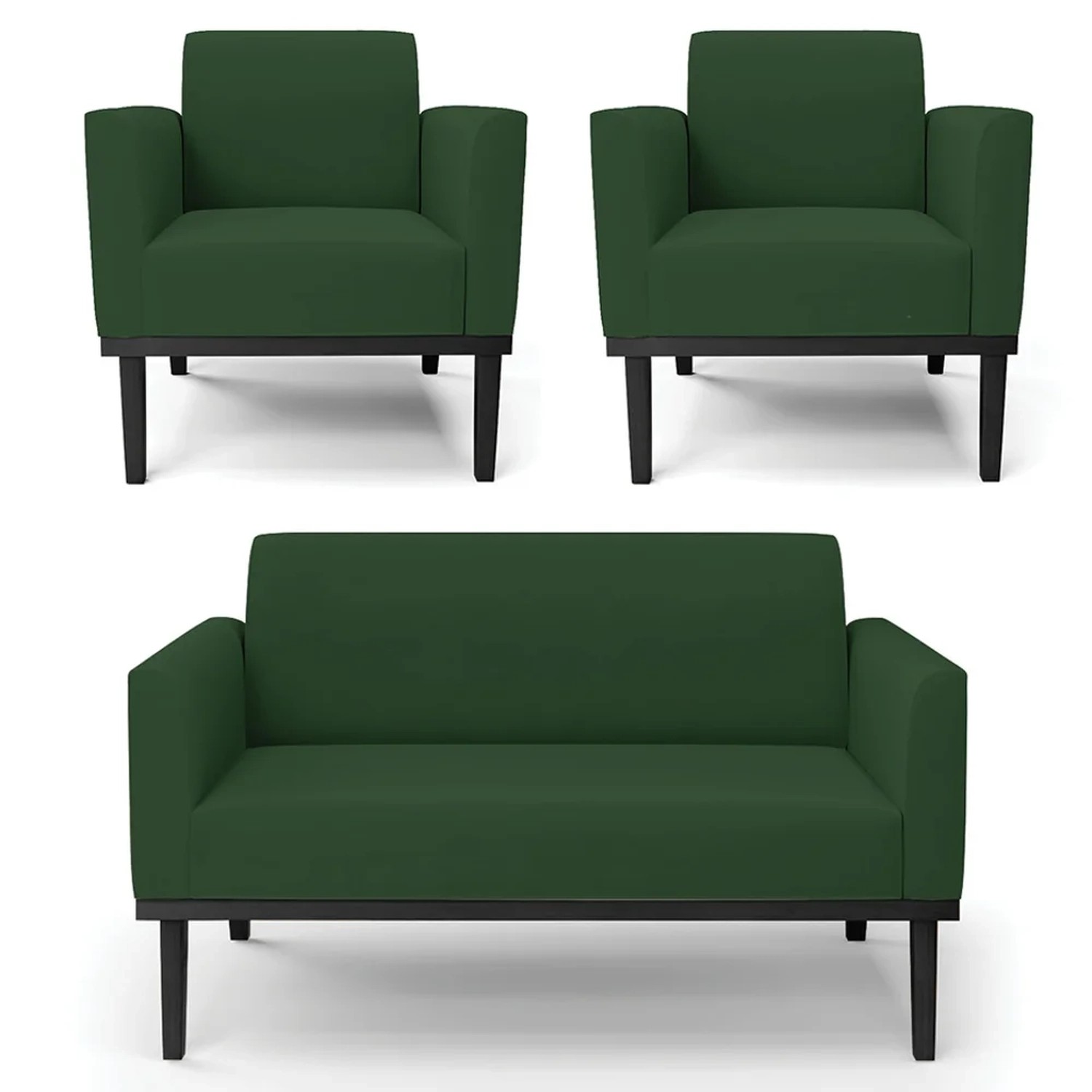 O Sofá Namoradeira e 2 Poltronas Base Madeira Preto Maressa Veludo Verde, da Ibiza é o conjunto ideal para quem busca beleza, conforto e versatilidade. Você pode usar na sua Sala De Estar, recepção ou qualquer outro ambiente que desejar.