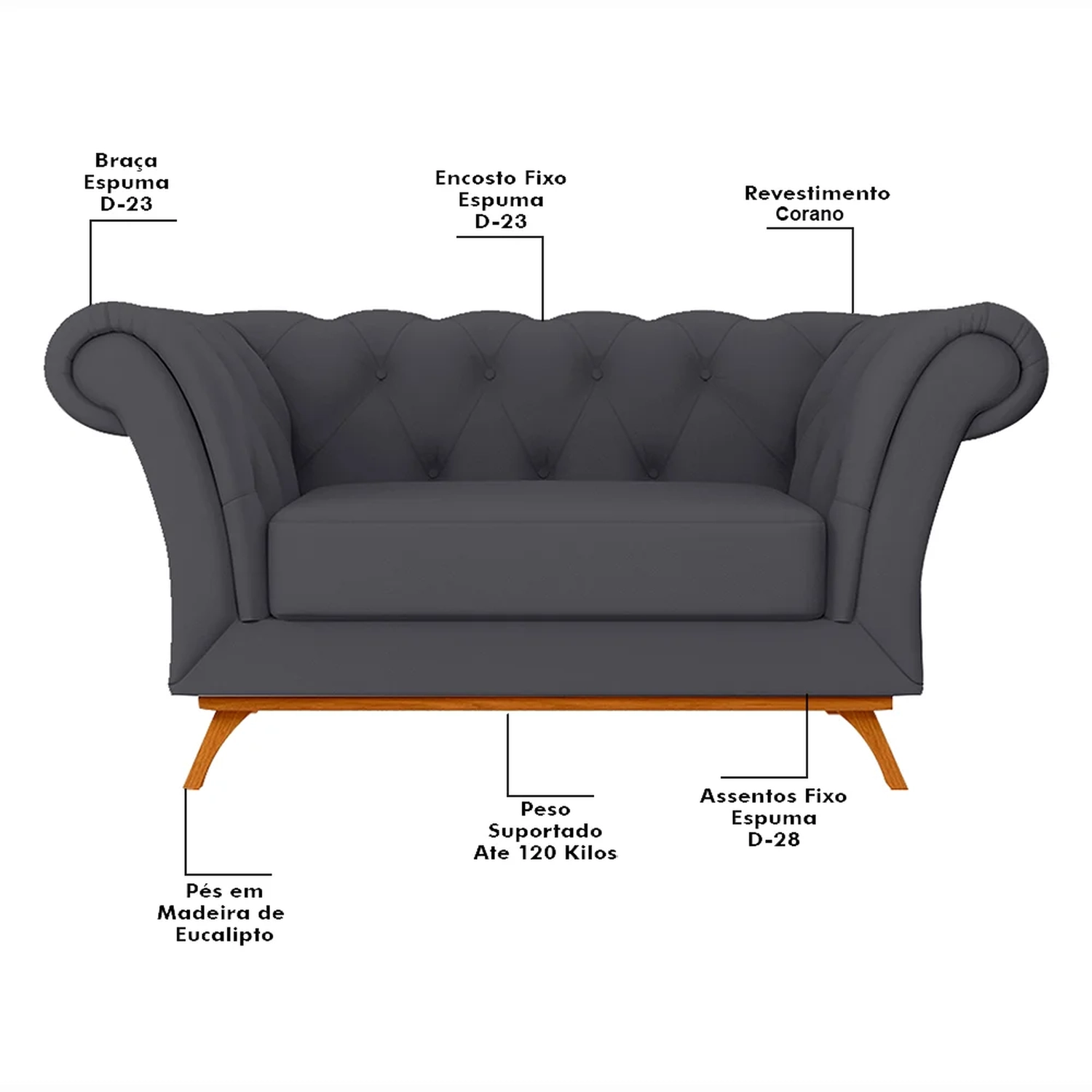Material e Densidade da Espuma:Assento em Espuma D-28/Encosto e Braço em Espuma:D-23.