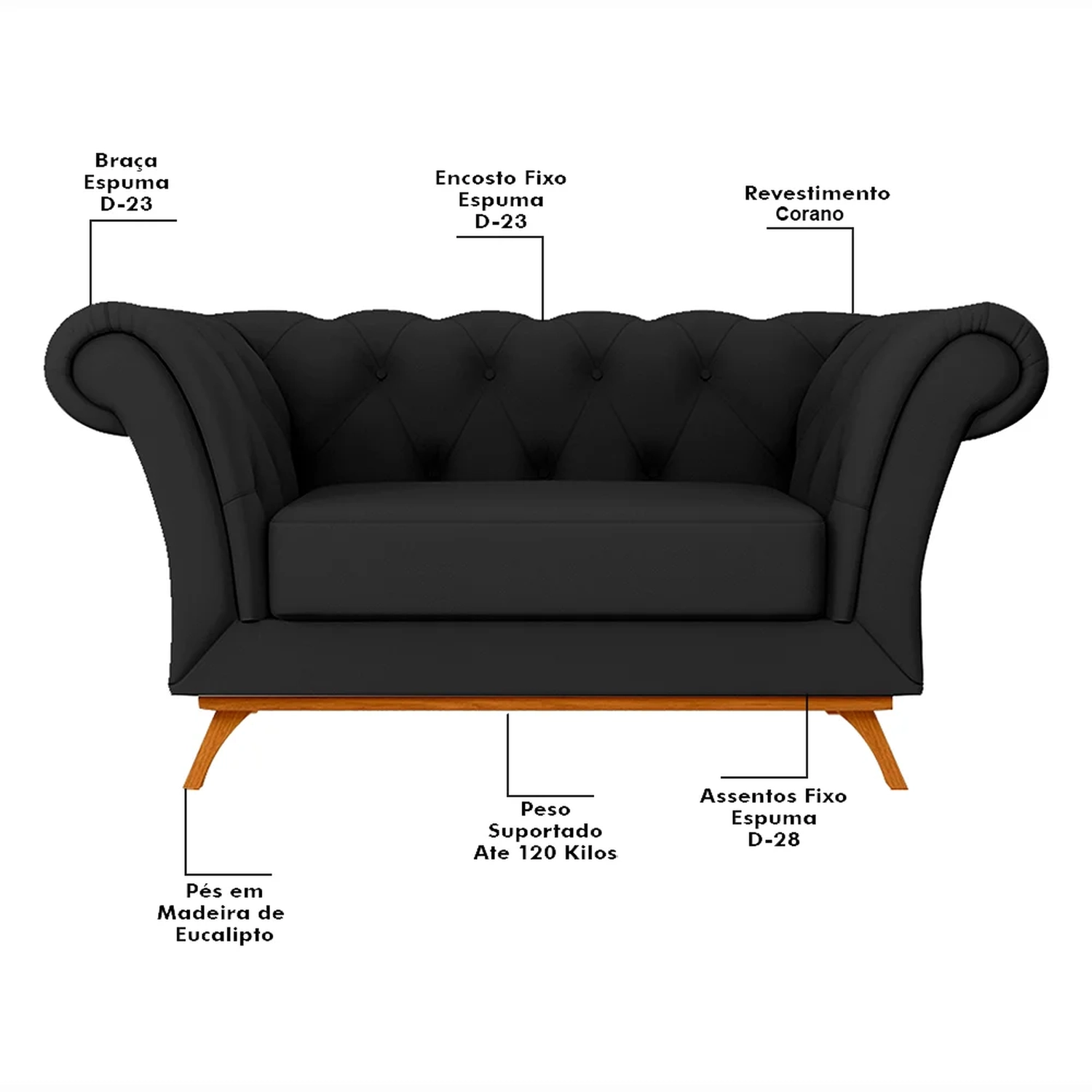 Sofá para Sala de Estar 150cm 1 Lugar Base Madeira Império C-05 Corano Preto - Domi 81565