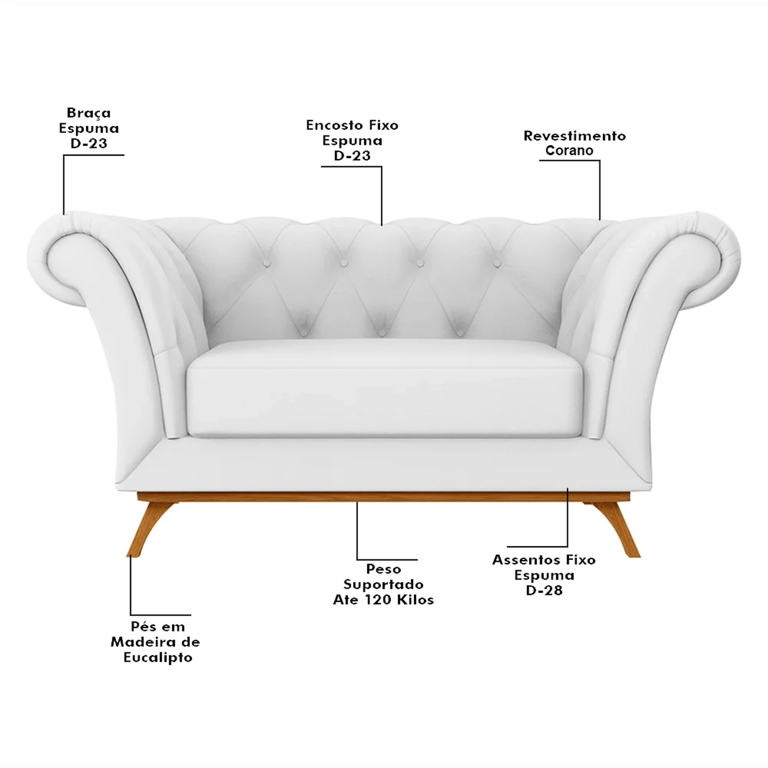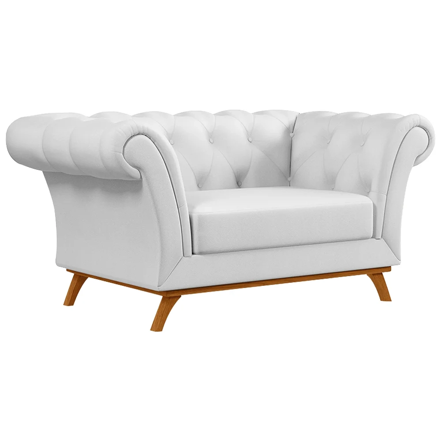 Sofá para Sala de Estar 150cm 1 Lugar Base Madeira Império C-12 Corano Branco - Domi 81563