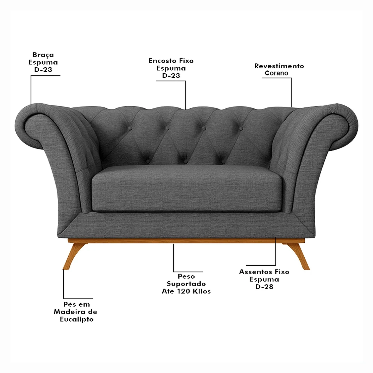 Material e Densidade da Espuma:Assento em Espuma D-28/Encosto e Braço em Espuma:D-23.