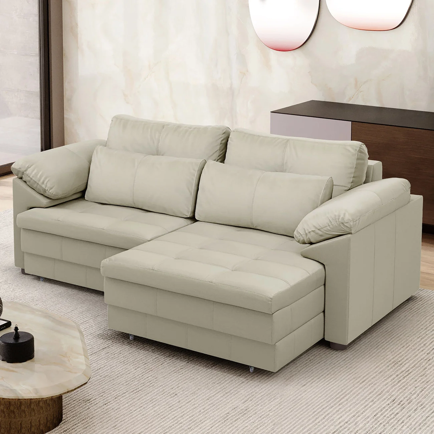 Sofá Retrátil 2 Lugares Para Sala 175cm Dijon Couro Creme S07
