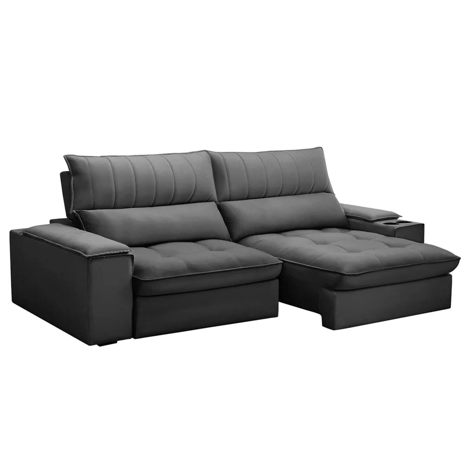 Você está procurando um sofá que ofereça o máximo de conforto e praticidade para a sua Sala De Estar? Então você precisa conhecer o Sofá Retrátil 3 Lugares com Porta Copo 250cm Andes F05 Veludo Grafite, da Mpozenato um produto de alta qualidade e design moderno.