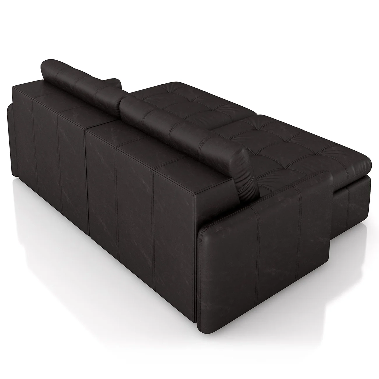 O assento retrátil do Sofá de Couro oferece mais espaço para relaxar com conforto absoluto. As almofadas soltas com fibra de silicone garantem apoio ergonômico e toque suave. Já a base em espuma HR 26 com percintas trançadas com alongadores metálicos une firmeza e flexibilidade no uso diário.