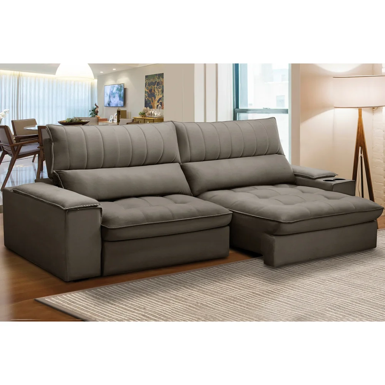 Você está procurando um sofá que ofereça o máximo de conforto e praticidade para a sua Sala De Estar? Então você precisa conhecer o Sofá Retrátil 4 Lugares com Porta Copo 280cm Andes F05 Veludo Marrom, da Mpozenato um produto de alta qualidade e design moderno.