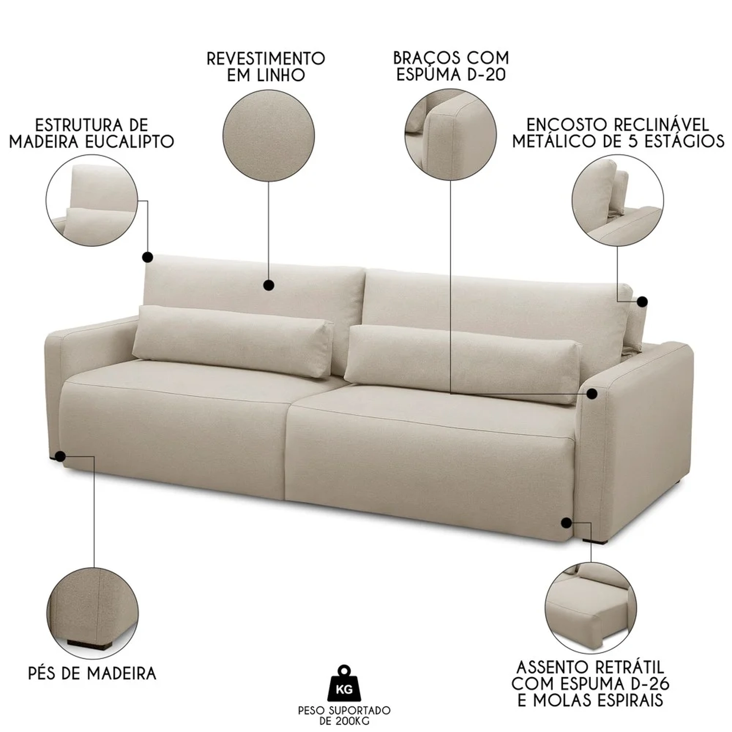 Se você está procurando um sofá confortável, bonito e com qualidade, o Sofá Retrátil Reclinável 210cm Sinna F05 Linho Bege, da Mpozenato é a escolha ideal para você!