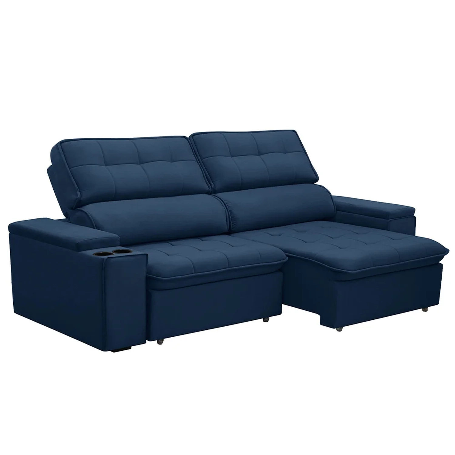 Ei, psiu! Procurando um sofá confortável para relaxar e curtir o momento? Então, você precisa conferir o Sofá Retrátil Reclinável 3 Lugares 210cm Ginevra F05 Veludo Azul, da Mpozenato!