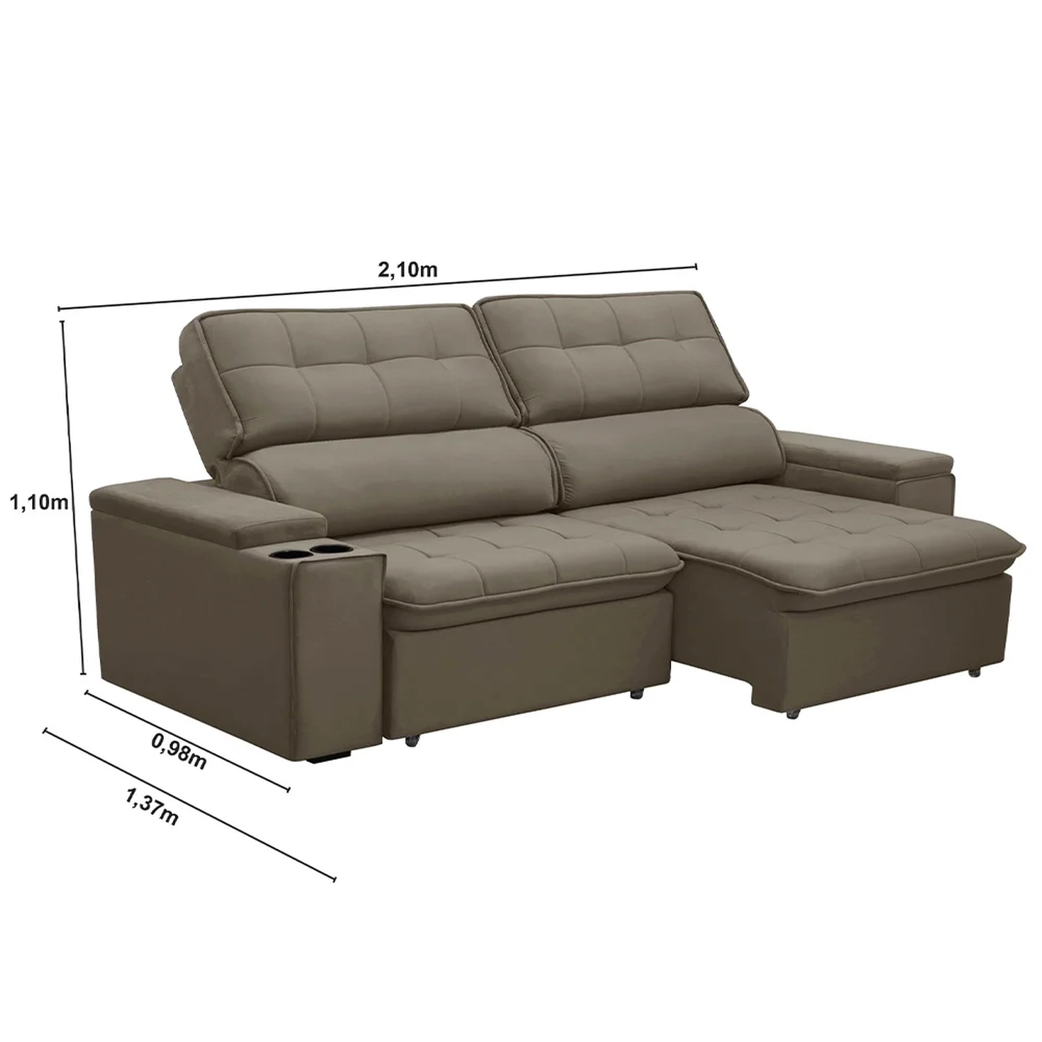 Profundidade do assento aberto: 137 cm.
