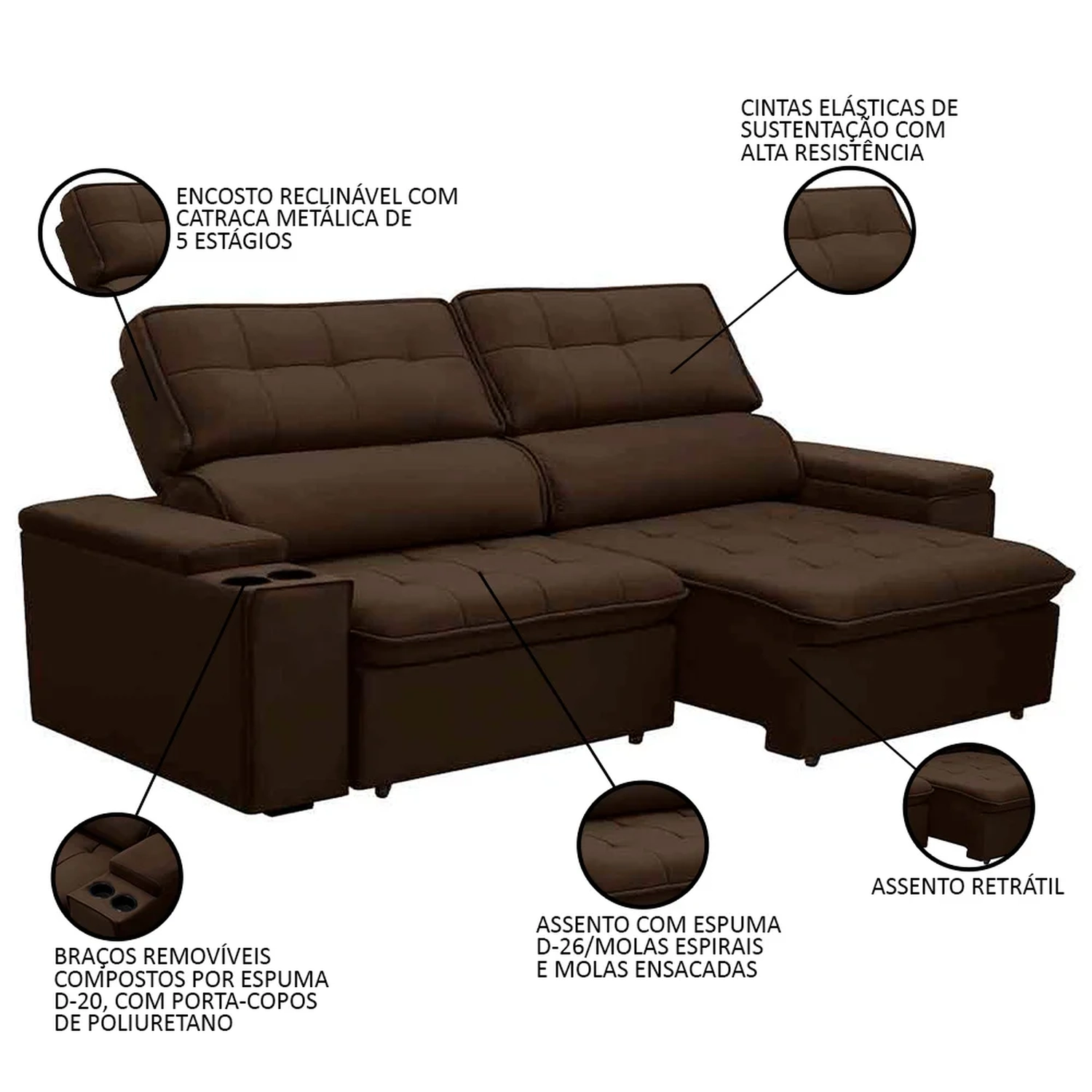 Material do Assento: Molas ensacadas/Molas Espirais/Espuma D-26.