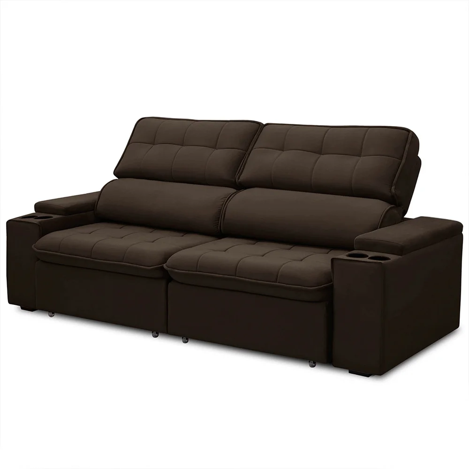 Ei, psiu! Procurando um sofá confortável para relaxar e curtir o momento? Então, você precisa conferir o Sofá Retrátil Reclinável 3 Lugares 210cm Ginevra F05 Veludo Marrom, da Mpozenato!