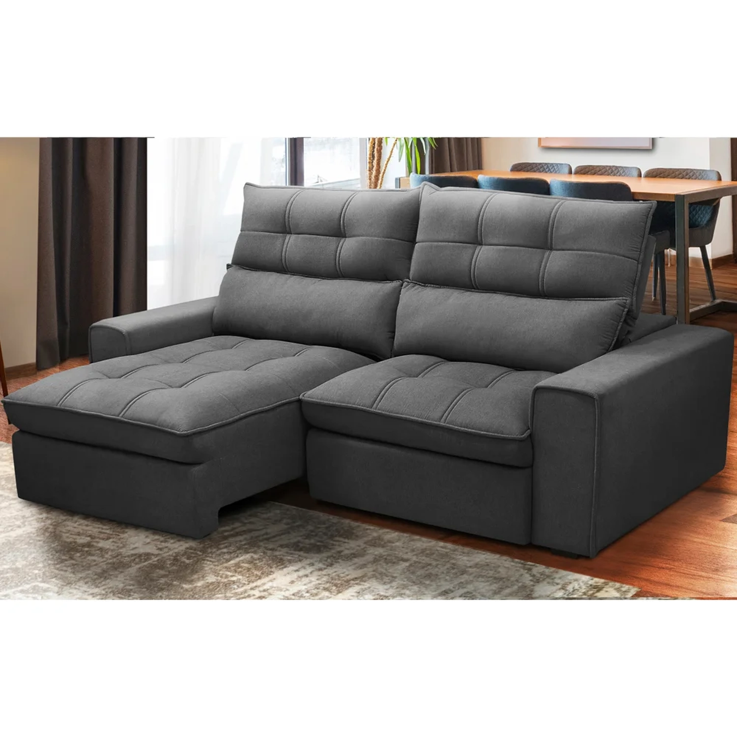 O Sofá Retrátil Reclinável 3 Lugares 230cm Damy F05 Veludo Grafite, da Mpozenato é uma ótima escolha para quem busca conforto e beleza na hora de decorar a Sala De Estar.