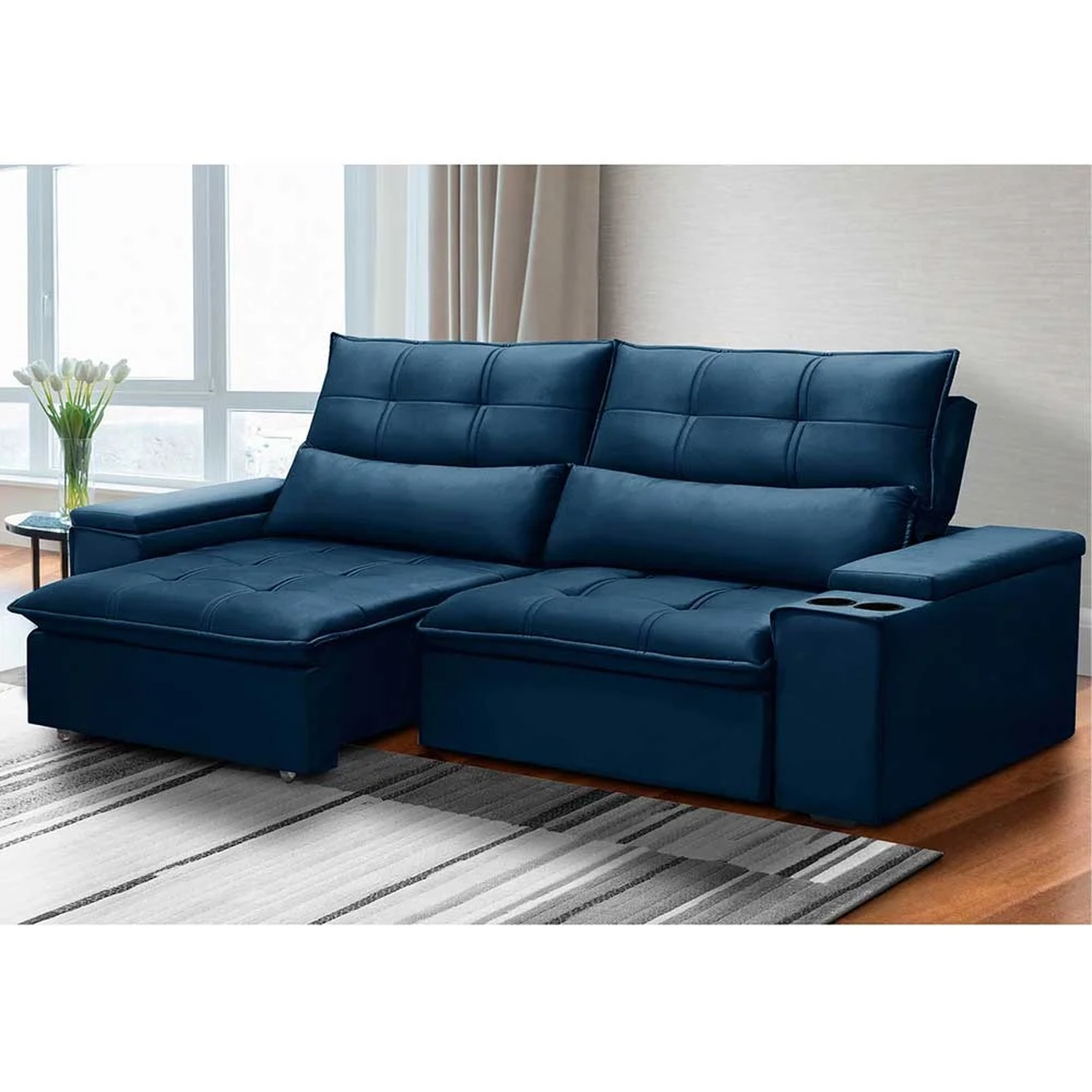 Com um design robusto, sem deixar de lado a modernidade e sofisticação, esse sofá retrátil será bastante disputado quando a família e amigos estiverem reunidos na sua casa; afinal, cada centímetro desse sofá 3 lugares expressa conforto e aconchego, pois mais que um estofado, o sofá Moritz é sinônimo de bem-estar. Além disso, é fabricado com matérias-primas alto padrão que garantem a resistência e durabilidade que você procura. Ahh, para completar, o porta-copos acoplado ao braço deixa esse sofá reclinável ainda mais funcional e pronto para a sessão cinema em casa!