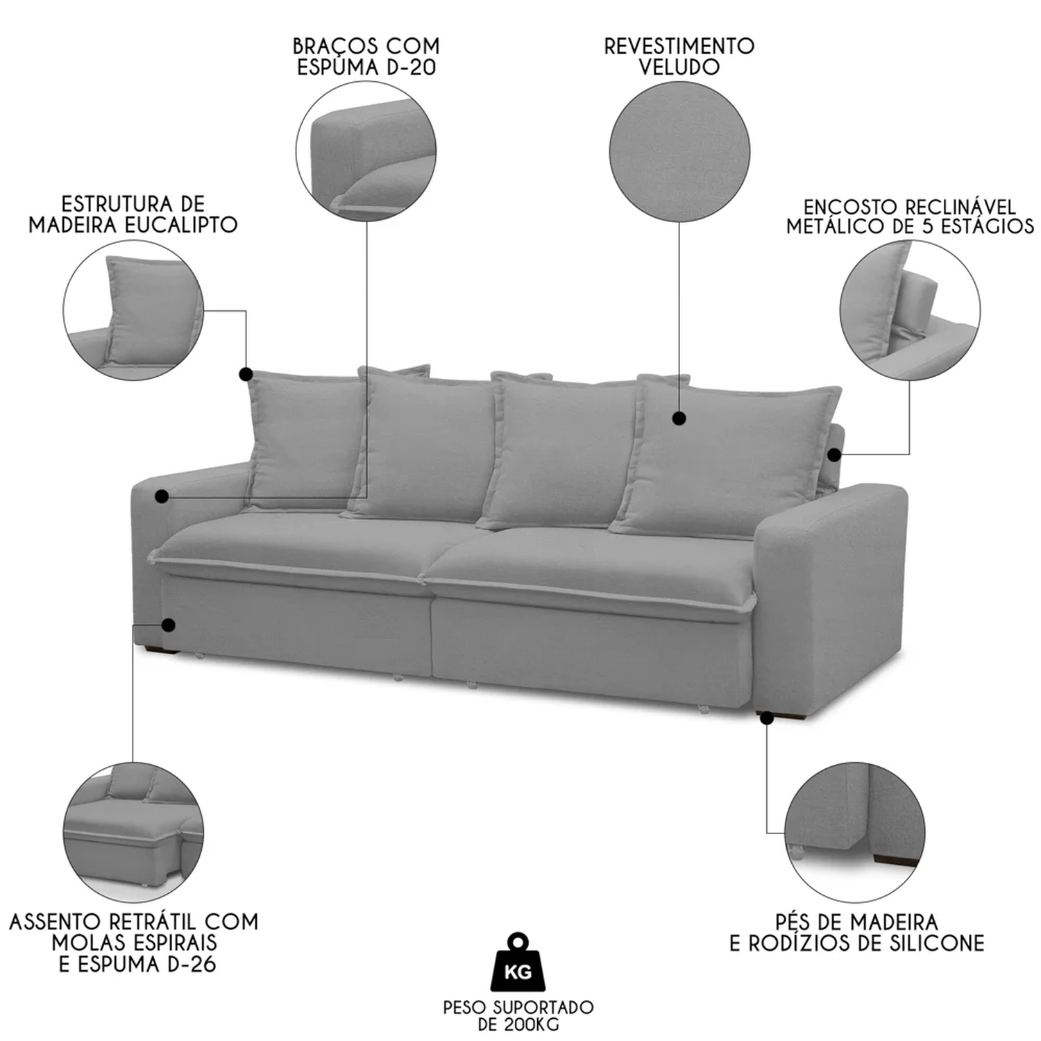Que tal transformar a sua sala de estar em um ambiente mais aconchegante e sofisticado com o Sofá Retrátil Reclinável 3 Lugares 235cm Roma F05 Veludo Cinza, da Mpozenato?