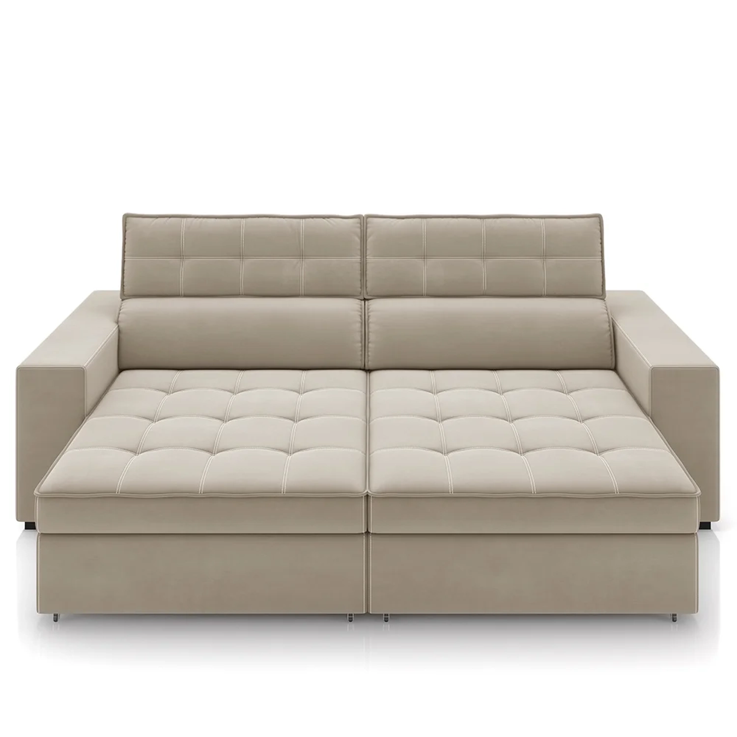 Projetado com design moderno, esse sofá retrátil é sinônimo de qualidade, já que seu conforto fica por conta da espuma de alta densidade aliada às molas espirais e molas ensacadas que garantem o duplo molejo e muito mais aconchego; enquanto que o revestimento em suede oferece um toque macio e suave. Além disso, a funcionalidade também faz parte desse estofado, uma vez que esse sofá 3 lugares pode ser aproveitado tanto aberto, quanto fechado, de acordo com a sua necessidade diária, seja para acomodar familiares e amigos para aquela conversa gostosa em um final de tarde ou para aquela sessão de filmes no fim de semana.