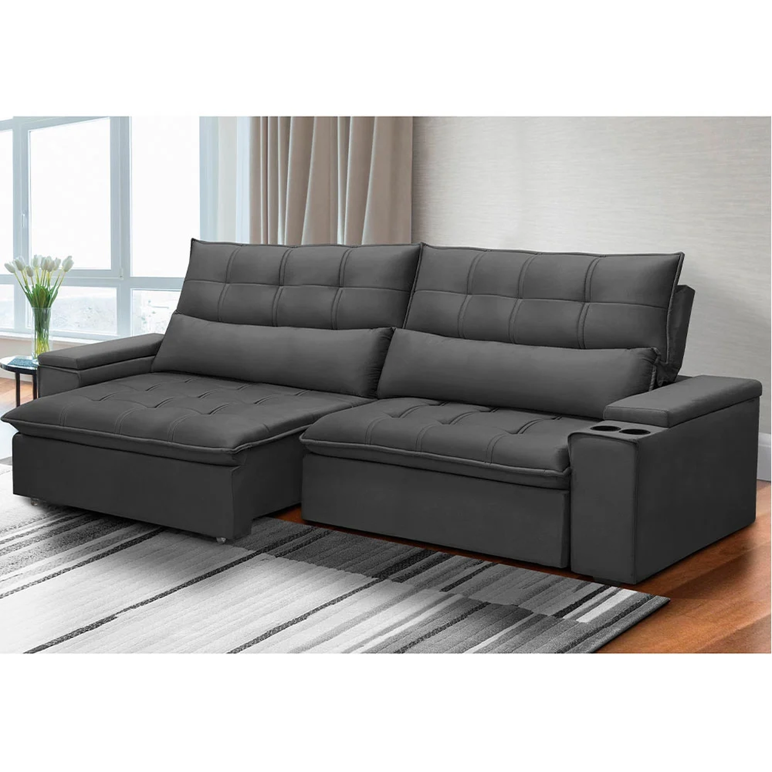 Feito para que você possa curtir um momento de relaxamento de forma plena, o Sofá Retrátil Reclinável 3 Lugares 250cm Moritz F05 Veludo Grafite, da Mpozenato, é exatamente a dose de conforto extra que a você e sua sala de estar precisam.