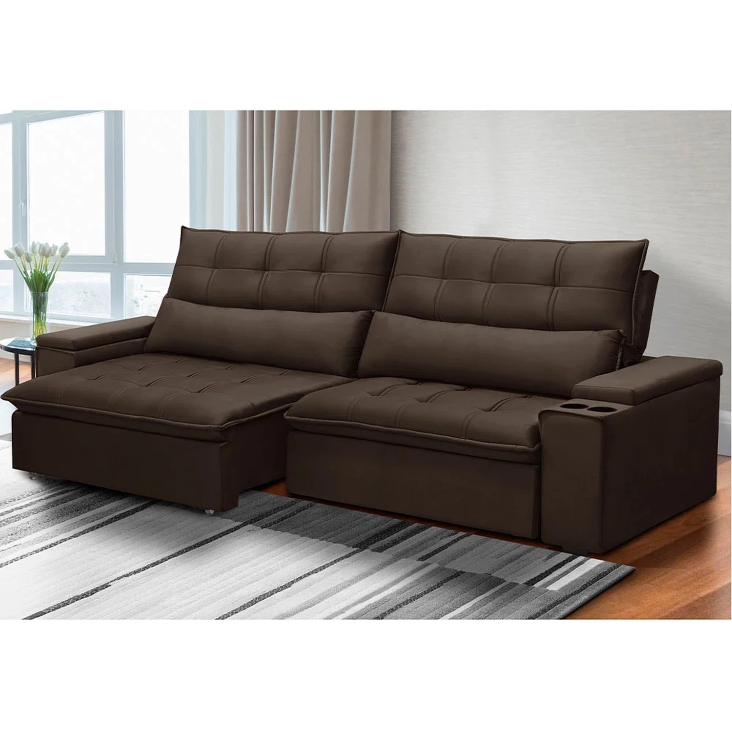 Com um design robusto, sem deixar de lado a modernidade e sofisticação, esse sofá retrátil será bastante disputado quando a família e amigos estiverem reunidos na sua casa; afinal, cada centímetro desse sofá 3 lugares expressa conforto e aconchego, pois mais que um estofado, o sofá Moritz é sinônimo de bem-estar. Além disso, é fabricado com matérias-primas alto padrão que garantem a resistência e durabilidade que você procura. Ahh, para completar, o porta-copos acoplado ao braço deixa esse sofá reclinável ainda mais funcional e pronto para a sessão cinema em casa!