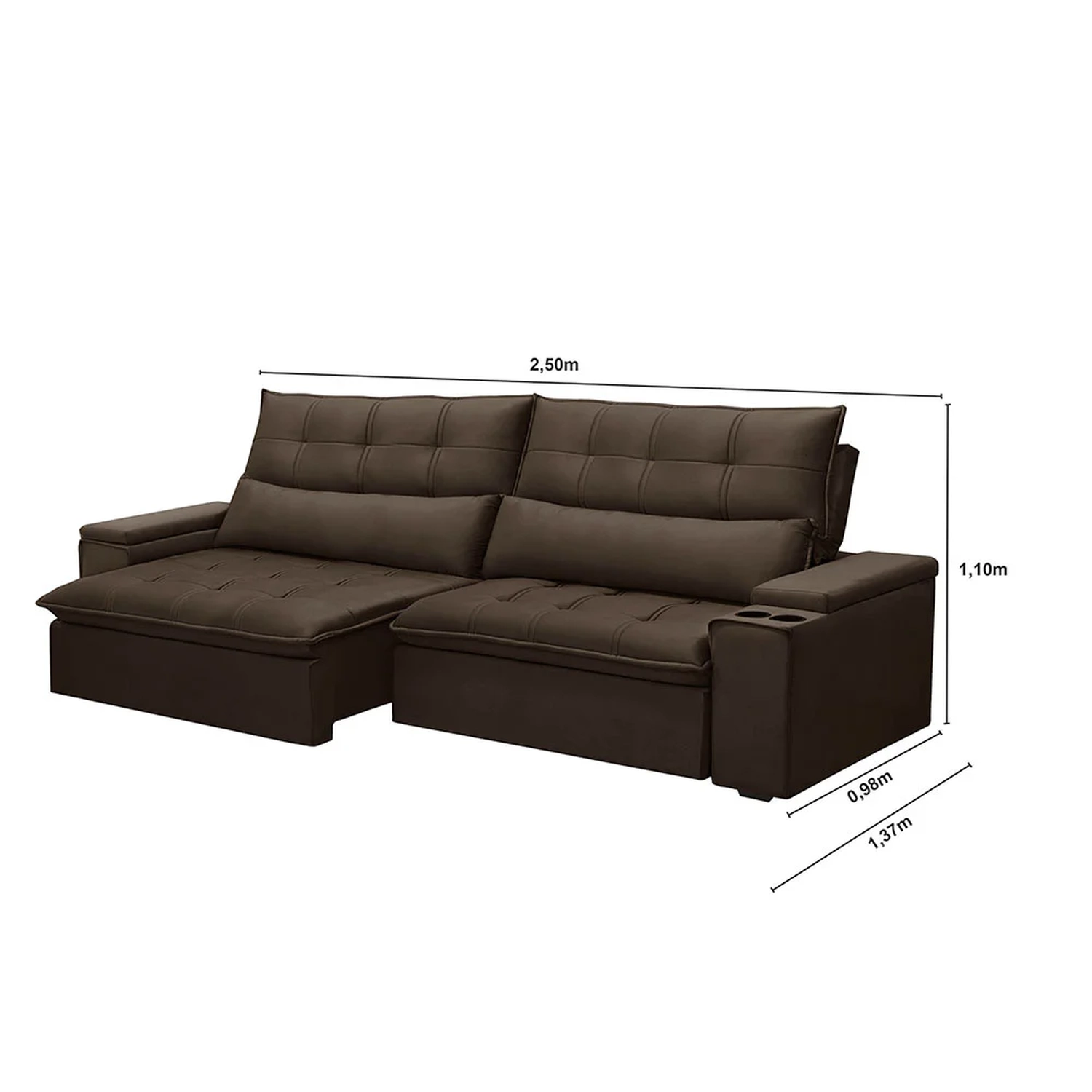 Profundidade do assento aberto: 137 cm.