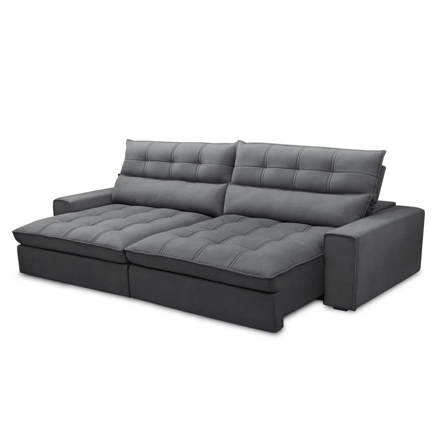 O Sofá Retrátil Reclinável 4 Lugares 290cm Damy F05 Veludo Grafite, da Mpozenato é uma ótima escolha para quem busca conforto e beleza na hora de decorar a Sala De Estar.