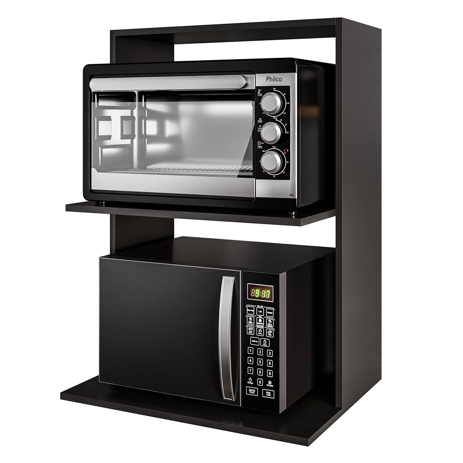 - Suporte duplo para forno e micro-ondas.