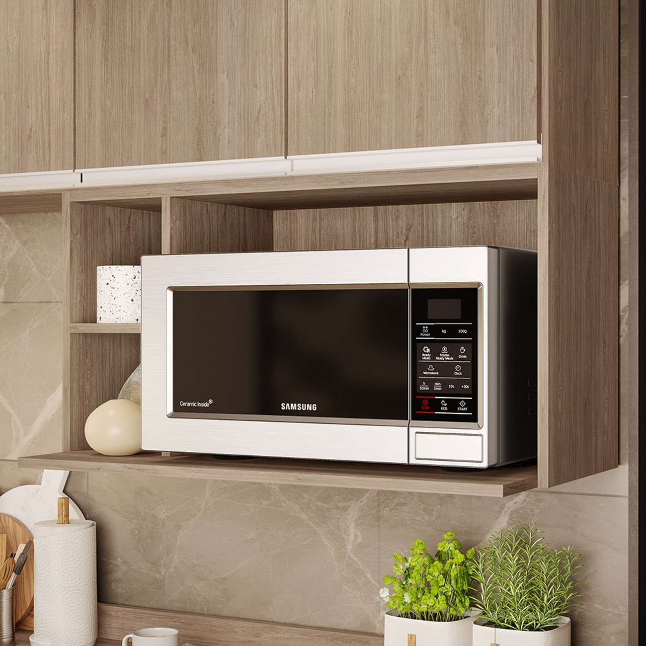 Perfeito para quem busca otimizar o espaço, ele serve como suporte para Micro-ondas ou forno elétrico, além de contar com nichos laterais que podem ser usados para decoração ou como adega com capacidade para até duas garrafas, deixando tudo sempre ao alcance das mãos.