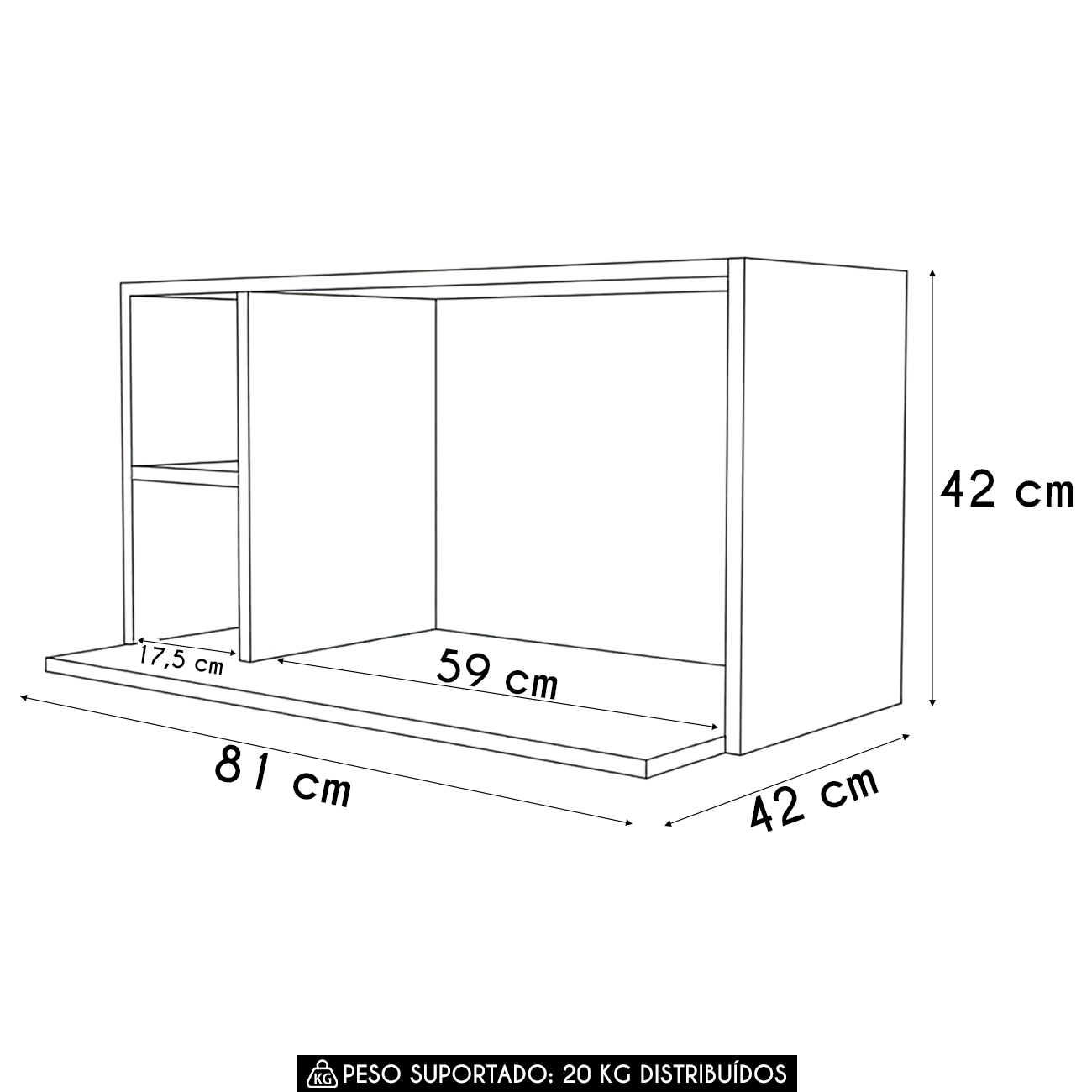 Peso Suportado: 20 kg distribuídos.