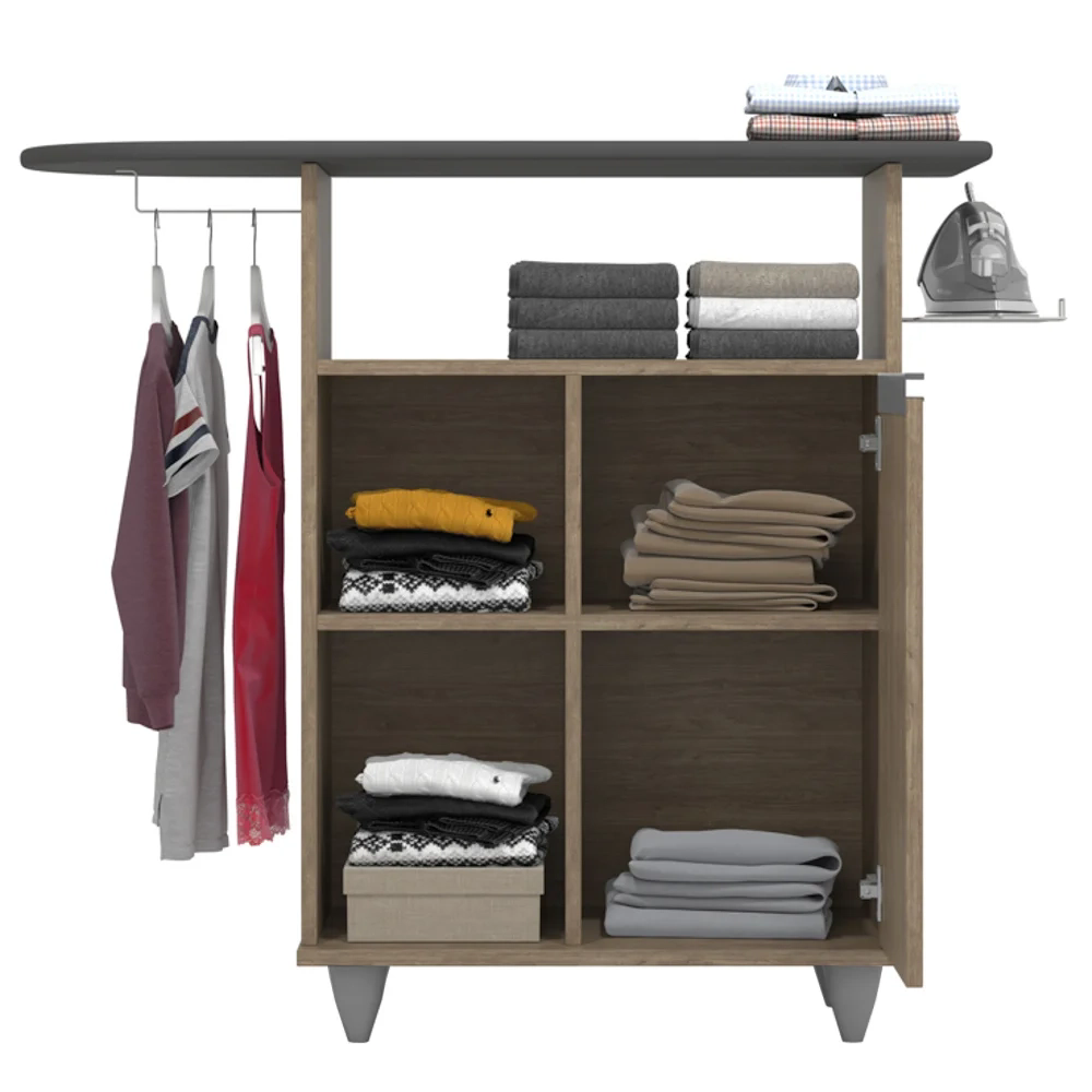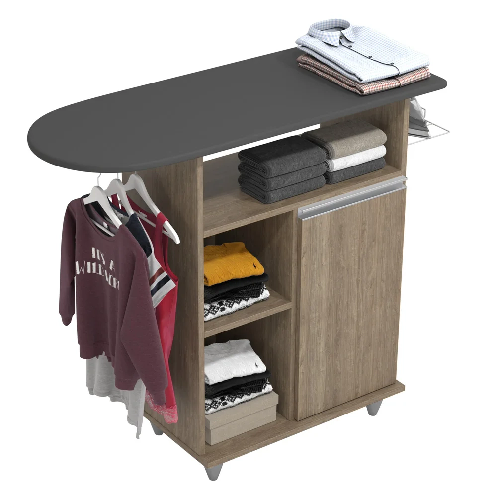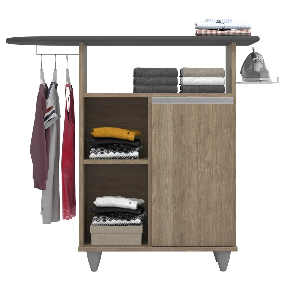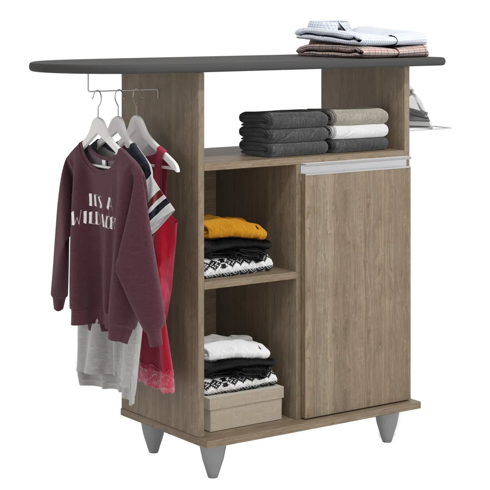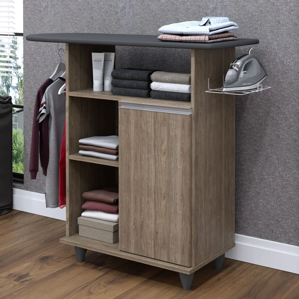 Organização e funcionalidade são alguns dos parâmetros de busca para encontrar um tábua de passar com balcão castanho que melhor se adapte ao ambiente, né? Então a Lumil Móveis fez a escolha certeira em desenvolver o modelo Giovana! Em termos de estrutura, ele conta com MDP, pés em PVC e pintura em Melamina BP agregando durabilidade e resistência. E a funcionalidade é que além da tábua de passar, este complemento também possui cabideiro para pendurar roupas, suporte para deixar o ferro sempre de prontidão, 1 nicho amplo e 2 nichos pequenos na lateral, 1 portas com puxadores cromados e 1 prateleira interna! Ah, e graças ao design versátil pode fazer parte da área de serviço, quarto ou onde preferir!
