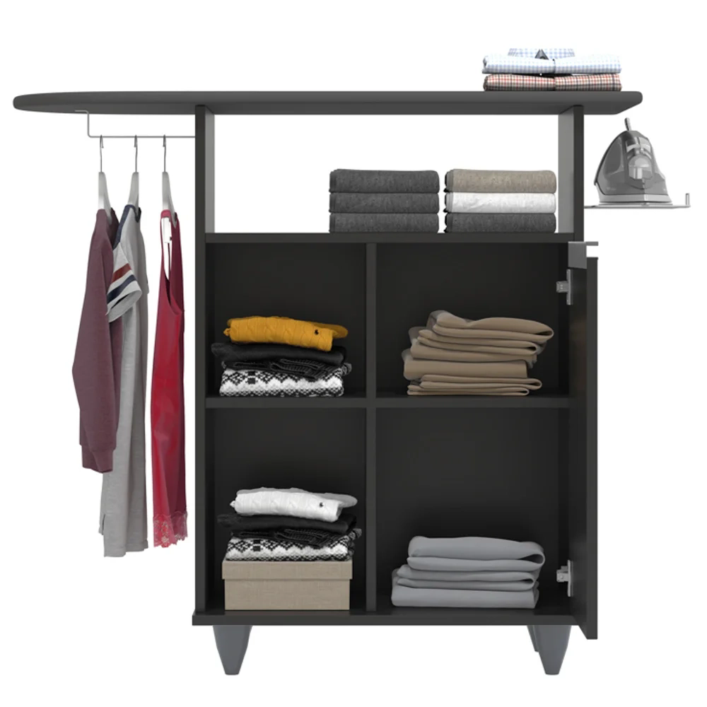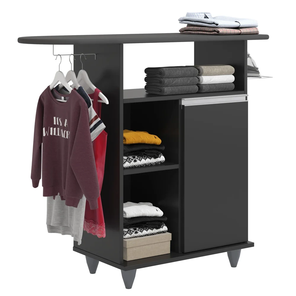 Organização e funcionalidade são alguns dos parâmetros de busca para encontrar um tábua de passar com balcão preto que melhor se adapte ao ambiente, né? Então a Lumil Móveis fez a escolha certeira em desenvolver o modelo Giovana! Em termos de estrutura, ele conta com MDP, pés em PVC e pintura em Melamina BP agregando durabilidade e resistência. E a funcionalidade é que além da tábua de passar, este complemento também possui cabideiro para pendurar roupas, suporte para deixar o ferro sempre de prontidão, 1 nicho amplo e 2 nichos pequenos na lateral, 1 portas com puxadores cromados e 1 prateleira interna! Ah, e graças ao design versátil pode fazer parte da área de serviço, quarto ou onde preferir!