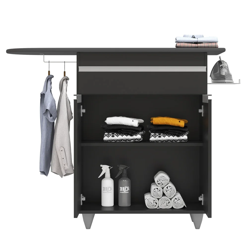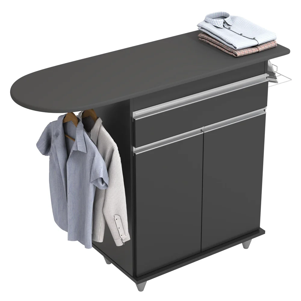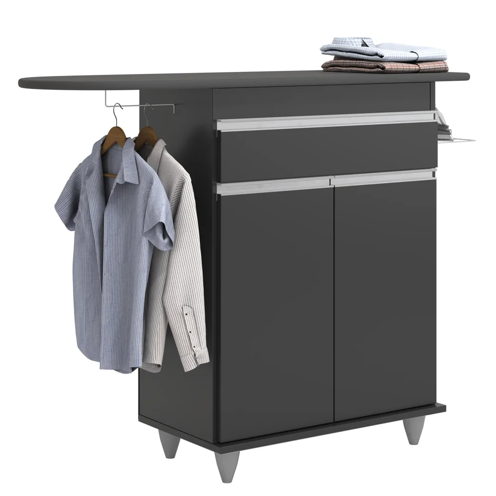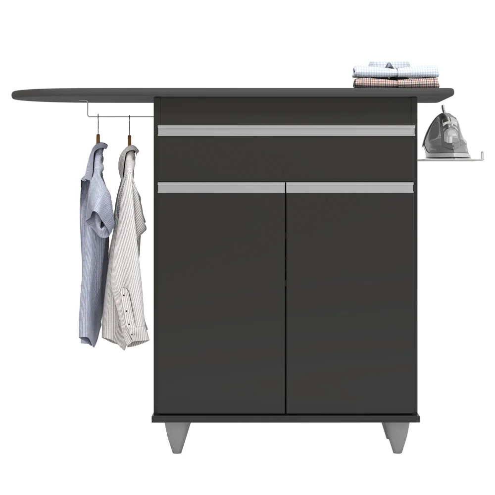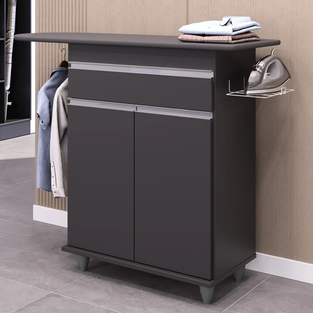 Se organização e funcionalidade estão nos seus parâmetros de busca em encontrar um tábua de passar com balcão preto que melhor se adapte ao ambiente, então a Lumil Móveis fez a escolha certeira em desenvolver o modelo Larissa! Em termos de estrutura, ele conta com durabilidade e resistência graças a estrutura em MDP, pés em PVC e pintura em Melamina BP. E a funcionalidade é que além da tábua de passar, este complemento também possui cabideiro para pendurar roupas, suporte para deixar o ferro sempre de prontidão, 1 gaveta de corrediças metálicas e puxadores cromados, 2 portas com o mesmo tipo de puxador e 1 prateleira interna! Ah, e graças ao design versátil pode fazer parte da área de serviço, quarto ou onde preferir!
